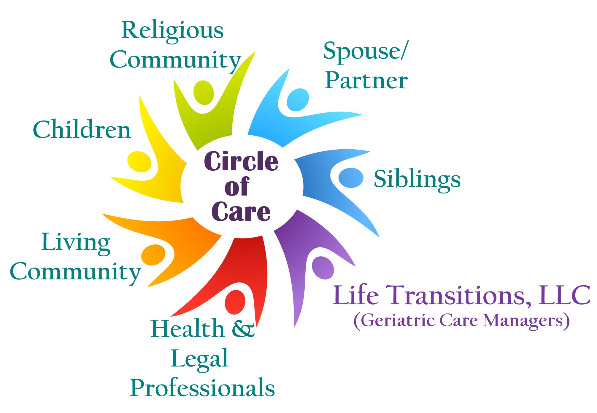 Life Transitions, LLC, serves clients, with Geriatric Care Management, In Home Care and Move Management services in Wichita, Newton, Hutchinson, McPherson, Salina and most of central Kansas. What is the circle of care? In Gail Sheehy’s book, Circle of Care: Turning Chaos into Confidence, she discusses the importance of forming a circle of care when taking on the role of a caregiver to a loved one. Life Transitions endorses this philosophy as you approach caregiving. Caregiving can be one of the most intimidating experiences. Responsibilities increase, family dynamics shift or conflict, challenges arise, and roles change. Couple these challenges with finding the best care options for our aging loved ones and the task can quickly become daunting. Finding the right support when you are a caregiver is necessary to success. Our experience in supporting caregivers will fill the gap in the cirlce of care surrounding you as a caregiver. Life Transitions has valuable experience to bring to the table to help make your life easier. Our goal is to find the options needed whether it be care or resources for professional assistance. By using our experience you will save time and effort by receiving streamlined options that are a good fit. If you would like a professional and experienced professional care manager to help fill the missing piece, in your circle of care, Life Transitions is ready to help you. Contact us now to discuss your situation to see how we can help. |